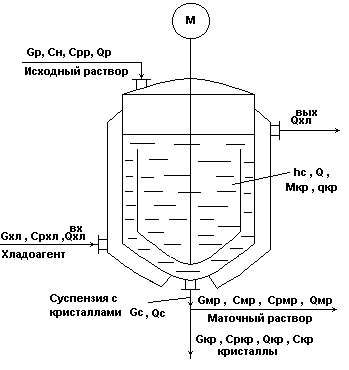 Рис.1.1 Показатель эффективности процесса - концентрация целевого компонента в гомогенизированном растворе (смеси) - Ссм. Цель управления процессом - обеспечение заданной концентрации смеси при эффективном и интенсивном перемешивании. Эффективность перемешивания обеспечивается выбором параметров аппарата, перемешивающего устройства, числа оборотов мешалки, обеспечивающих равномерность концентрации смеси в аппарате с заданнойинтенсивностью (т.е. за заданное время). Однако в реальных условиях технологические объекты подвержены действию внешних и внутренних возмущений, которые приводят к отклонению технологических режимов работы от расчетных. Задача разработки системы автоматизации обеспечить в условиях действия внешних и внутренних возмущений в процессе эффективное и интенсивное его функционирование с требуемыми характеристиками качества. Теоретические аспекты процесса механического перемешивания.