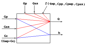 Рис.2. Тепловой баланс низа колонны ( н = 0 ).