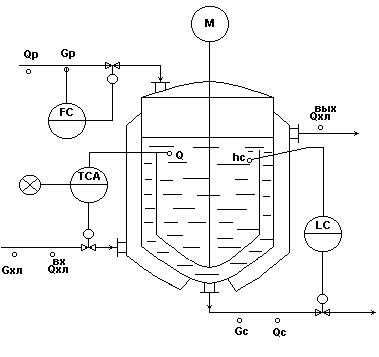 Реферат: Автоматизация технологических процессов основных химических производствРеферат: Автоматизация технологических процессов основных химических производствМинистерство образования Российской федерации Санкт-Петербургский государственный технологический институт (технический университет) Кафедра автоматизации процессов химической промышленности Г.В. Иванова «Автоматизация технологических процессов основных химических производств» Методические материалы по курсу лекций (в двух частях) Часть 1. 2003г. УДК 66-52:66(075) Иванова Г.В. Автоматизация технологических процессов основных химических производств: Методическое пособие. Часть 1/ СПбГТИ(ТУ).-СПб., 2003.- 70с. Методическое пособие предназначено для курса лекций по учебной дисциплине «Автоматизация технологических процессов основных химических производств», являющейся дисциплиной специализации 210201 – «Автоматизация технологических процессов химической промышленности» учебного плана по специальности 210200. Пособие разработано в виде методических материалов, используемых при чтении лекций по дисциплине. Часть 1 методического пособия включает в себя общую характеристику химико-технологических процессов (ХТП) как технологических объектов управления (ТОУ); методику анализа ХТП как ТОУ; физико-химические основы технологических процессов, технологические схемы рассматриваемых объектов управления, математические описания объектов управления, постановку задачи автоматизации, типовые схемы автоматизации, типовые решения автоматизации для гидромеханических и тепловых процессов. Утверждено на заседании методической комиссии факультета Информатики и управления 23 июня 2003г., протокол № 6. Материалы к лекции №1Введение. Общие подходы к автоматизации ХТП. Предметом изучения в данном курсе являются проблемы автоматизации основных химических производств. Основные химические производства и составляющие их технологические процессы мы рассматриваем в данном курсе как объекты управления. Химико-технологические объекты управления. Определение ТОУ: