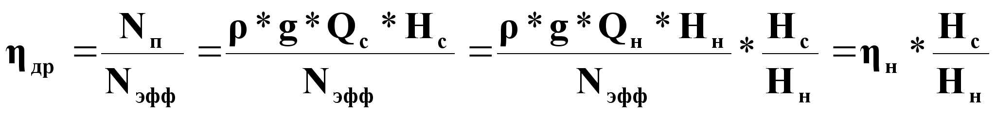 где ηv = Q/QТ - объемный к.п.д.;