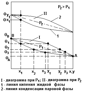 По сигналу «В схему защиты» - прекратить подачу материала и топлива в сушильный агрегат. 5. Материалы к лекции №13Автоматизация процесса ректификации (ч.1) Диаграмма равновесия «θ – x – y » при Р= const.