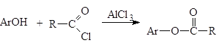 Растворителем при ацилировании по Фриделю-Крафтцу может служить избыток ацилируемого углеводорода. Иногда применяют дисульфид углерода, так как он практически не влияет на реакционную способность хлорида алюминия, но комплекс образовавшегося ароматического кетона с хлоридом алюминия остается при этом чаще всего в твердой фазе, поэтому при больших загрузках реакционная смесь с трудом перемешивается и обрабатывается. Кроме того, дисульфид углерода ядовит и очень легко воспламеняется. В нитробензоле или галогеноуглеродах (дихлорэтане или трихлороэтилене) активность катализатора несколько понижена из-за комплексообразования, кроме того ацилирование по Фриделю-Крафтцу в них можно применять только при температурах ниже 50oC, так как в противном случаем они сами вступают в реакцию. В менее полярном 1,2-дихлорэтане (этиленхлориде) из нафталина получают a-кетон и, напротив, в сильнополяризованной среде (нитробензола) - b-кетон. Общая методика ацилирования по Фриделю-Крафтцу. В трегорлой колбе емкостью 1л, снабженной мешалкой и капельной воронкой с хлоркальциевой трубкой, смешивают 400мл 1,2-дихлорэтана с 1,2 моля тонкорастертого хлорида алюминия и добавляют по каплям при перемешивании и охлаждении ледяной водой 1,05 моля ацилхлорида. Затем из капельной воронки при охлаждении водой добавляют 1 моль ароматического соединения так, чтобы температура смеси поддерживалась около 20оС. Реакционную смесь перемешивают еще 1 ч. и оставляют на ночь. При ацилировании галогенбензолов нагревают 5 ч. при 50оС, причем ацилируемое соединение используемся в качестве растворителя (все количества галогенбензола сразу помещают в колбу). Для разложения комплекса кетона с хлоридом алюминия содержимое колбы осторожно выливают на 500мл льда, выпадающий гидроксид алюминия переводят в раствор, добавляя небольшое количество концентрированной соляной кислоты. Затем в делительной воронке отделяют органический слой, а водные дважды извлекают дихлорэтаном. Объединенные вытяжки тщательно промывают водой, 2%-ным раствором гидроксида натрия и снова водой. После сушки карбонатом калия растворитель отгоняют, а кетон перегоняют в вакууме. Приведенная методика также пригодна для полумикросинтезов. Реакции О‑ацилирования. Реакция этерификации, являющаяся по сути реакцией О‑ацилирования, используется в качестве основного способа получения сложных эфиров. Вследствие малой активности карбонильных групп в карбоновых кислотах они, как правило, медленно реагируют со спиртами. Этерификацию можно существенно ускорить, добавляя сильные кислоты (серную кислоту, безводный хлороводород, сульфоновые кислоты, кислые ионообменные смолы):