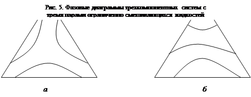 существует область составов, в которой наблюдается неограниченное смешение трех