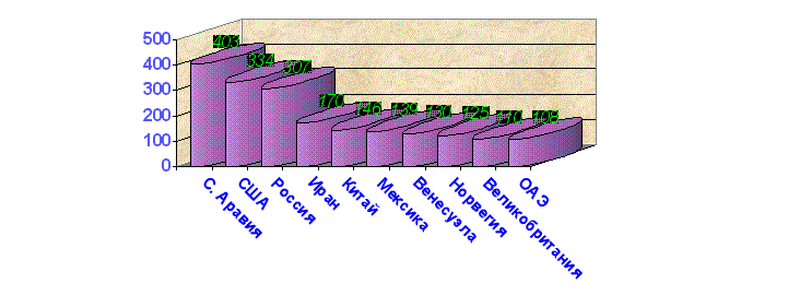 В Западной Сибири сосредоточено 68% промышленных (кат. А+В+С1) и 72% потенциальных запасов природного газа России. Уникальна Северная газоносная провинция Западной Сибири. Она занимает территорию в 620 тыс. км2. Здесь расположены крупнейшие месторождения - Уренгойское, Ямбургское, Медвежье и Тазовское. Помимо этого, к крупным месторождениям газа относятся Оренбургское (Урал), Астраханское. Попутно с газом в них содержатся ценные компоненты: сера и газоконденсат. На территории республики Коми разведано Вуктыльское месторождение газа. Наиболее значительные месторождения природного газа Северного Кавказа - "Дагестанские огни" (Дагестан); Северо-Ставропольское и Пелагиадинское (Ставропольский край); Ленинградское, Майкопское, Минское и Березанское (Краснодарский край). Диаграммы №1 и №4 также показывают некоторый спад объемов добычи газа в 1995 году, но тем не менее отражают первое место России в мировой добыче. В 1994 году в России было добыто 607.3 млрд. м3 природного газа, что составило 98.2 % к объему добычи в 1993 году, причем 570.6 млрд. м3 (более 90 %) было добыто РАО "Газпром". РАО "Газпром" - владелец месторождений с общими запасами около 48 трлн.м3 и является крупнейшей компанией в мире как по запасам, так и по добыче природного газа. Для сравнения - запасы крупнейших компаний мира (млрд. м3):
