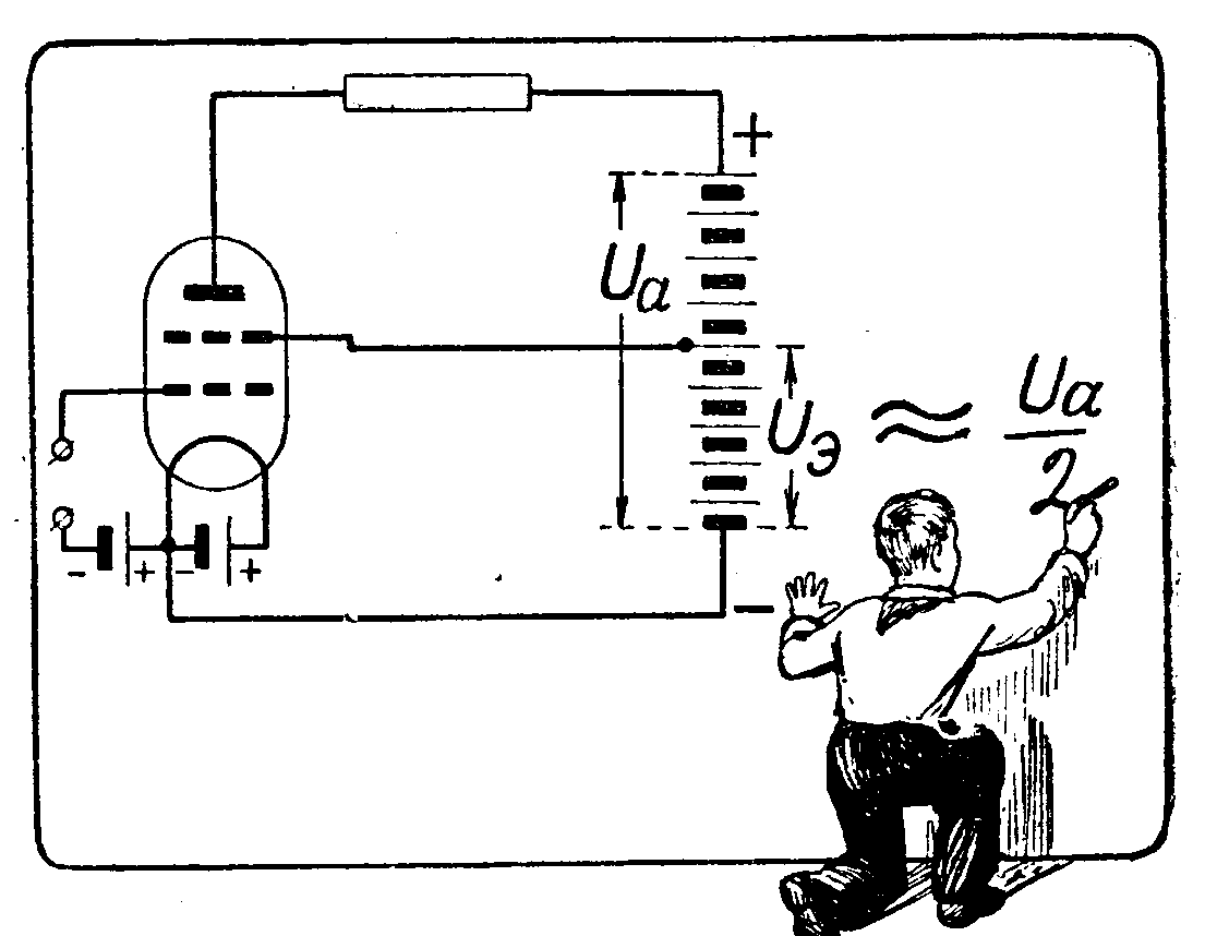 ли, что чем гуще управляющая сетка лампы, тем больше коэффициент усиления. Следовательно, надо делать сетку очень густой, тогда и коэффициент усиления будет очень большим. На самом деле это не так. В действительности у триода почти невозможно сделать коэффициент усиления больше 100, и вот почему. Коэффициент усиления показывает, во сколько раз напряжение на сетке действует на анодный ток сильнее, чем напряжение на аноде. Если =10, то это значит, что изменение напряжения на сетке на 1 в действует так же, как изменение на аноде на 106. Подав на анод этой лампы напряжение, например, 1506, мы создадим в ее анодной цепи некоторый ток. Поскольку 1 в на сетке лампы действует также, как 10 в на аноде, то очевидно, что, подав на сетку—15 в, мы совершенно прекратим анодный ток; отталкивающее по отношению к электронам действие сеточного напряжения уравновесит притягивающее действие анода. Если бы коэффициент усиления лампы был больше, например равнялся 30, то анодный ток прекратился бы при напряжении на сетке—5 в, а при =100 для прекращения анодного тока потребовалось бы подать на сетку всего—1,5 в. Для работы усилительной лампы используется, как мы видели, участок характеристики между нижним перегибом и точкой, соответствующей нулевому напряжению на сетке. В триоде с большим (и этот участок будет совсем мал: при =100 он окажется в лучшем случае немногим больше, чем 1 в. Значит, к сетке такой лампы нельзя подводить переменные напряжения с амплитудой больше чем 0,5 б, так как в противном случае колебания попадут в область сеточного тока и на перегиб характеристики, что приведет к искажениям. Это обстоятельство очень ограничивает возможности использования триодов с большим .