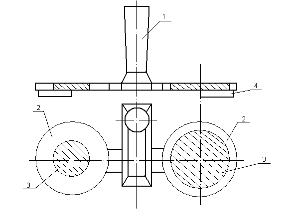 Рис.6 Кольцевая проба на горячеломкость. 1 – литник; 2 – кольца переменной ширины; 3 – металлический стержень; 4 - холодильник А и уменьшением внешнего диаметра формы С. Каждая форма характеризуется условным номером N, соответствующим определённым значениям А и С: N………………………………. 4 5 6 7 8 9 А, дюйм………………………. 23/4 29/16 23/8 23/16 2 113/16 С, дюйм..................................... 3/4 3/4 3/4 3/4 3/4 3/4 N................................................. 10 11 12 13 14 15 16 А, дюйм..................................... 15/8 15/8 15/8 11/2 13/8 11/4 11/8 С, дюйм...................................... 3/4 1 11/4 11/4 11/4 11/4 11/4 На поверхности образца, Поворачиваемого в специальном держателе, По отсчетному лимбу измеряется угловая величина концентрических трещин (осевой их составляющей пренебрегают). Результаты измерений для каждого сплава представляются в виде графика "относительная длина трещин (%) – номер литейной формы». Чем больше этот номер, тем меньше растягивающие деформации и короче трещины. За показатель горячеломкости выбирается номер формы, при котором относительная длина трещины равна 40%. Проба Хала (CPT-Test - cast-pin tear test) обладает удовлетворительной чувствительностью и позволяет производить сравнительно быстрые и недорогие испытания тугоплавких сплавов на горячеломкость. 1.3.3. В третьей группе проб показателем сопротивляемости образования трещин является критическая нагрузка на затвердевающий образец. Здесь можно выделить две подгруппы: пробы с заранее приложенной постоянной нагрузкой и пробы, в которых усадка тормозится непрерывно возрастающей нагрузкой (пружиной). В пробах с постоянной нагрузкой вся она быстро передаётся на образец, когда начинается линейная усадка. В то же время в производственных отливках усадочные напряжения возникают постепенно по мере развития затруднённой усадки. Поэтому вполне логично использование проб, в которых усадка тормозится пружиной и нагрузка непрерывно возрастает от нуля до некоторой критической величины в момент образования трещины. Этот момент отмечается по появлению максимума на кривой «усилие