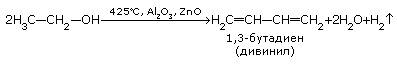 Сырьём для получения бутадиена служит этиловый спирт. Получение бутадиена основано на реакциях дегидрирования и дегидратации спирта. Эти реакции идут одновременно при пропускании паров спирта над смесью соответствующих катализаторов: