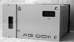 Газоанализатор работает следующим образом. При отсутствии в пробе АГС кислорода отсутствует и поток термомагнитной конвекции FM. Создаваемый термоанемометром 3 поток тепловой конвекции Ft1 уравновешен потоком тепловой конвекции Ft2, создаваемым нагревателем 5 при протекании через последний начального тока. Это состояние газоанализатора соответствует исходному состоянию, когда концентрация кислорода в пробе АГС равна нулю. При этом на входе в усилитель сигнал рассогласования отсутствует. При появлении в пробе АГС кислорода возникает поток термомагнитной конвекции Fм вызывающий разбаланс мостовой схемы. На входе в усилитель появляется сигнал, который после усиления воздействует на управляемый источник питания таким образом, чтобы уменьшить ток через нагреватель 5. При этом уменьшается поток тепловой конвекции Ft2 и увеличивается результирующий поток тепловой конвекции FT = Ft1 — Ft2. Результирующий поток тепловой конвекции будет увеличиваться до тех пор, пока он не уравновесит возникший поток термомагнитной конвекции, т. е. пока не наступит равенство FK = FT. При этом на входе в усилитель сигнал вновь станет равным нулю, а изменившееся значение тока питания нагревателя 5 будет функцией концентрации кислорода в пробе АГС. Аналогичным образом действует газоанализатор и при диапазонах с подавленным нулем. В этом случае исходному положению соответствует такое состояние компенсации, когда начальному значению потока термомагнитной конвекции соответствует равное ему значение результирующего потока тепловой конвекции. Рассмотренный термомагнитный компенсационный газоанализатор обеспечивает компенсацию при любых концентрациях кислорода в пробе АГС. Прибор Газоанализатор АГ0011 [4]