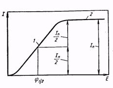 где Е — разность между равновесным потенциалом и потенциалом поляризованного электрода; R — газовая постоянная; Т—абсолютная температура; п — число электронов, участвующих в суммарной электрохимической реакции; F — число Фарадея; I — ток, проходящий через полярографическую ячейку; IД — диффузионный ток. На рис. 4 представлена полярограмма раствора, содержащего один определяемый компонент. При наложении на электроды увеличивающейся разности потенциалов через электролит, в котором растворен определяемый компонент пробы АГС, протекает небольшой электрический ток. Однако при поляризации индикаторного электрода ток быстро увеличивается, достигает постоянного (предельного) значения, не зависящего от потенциала электрода.