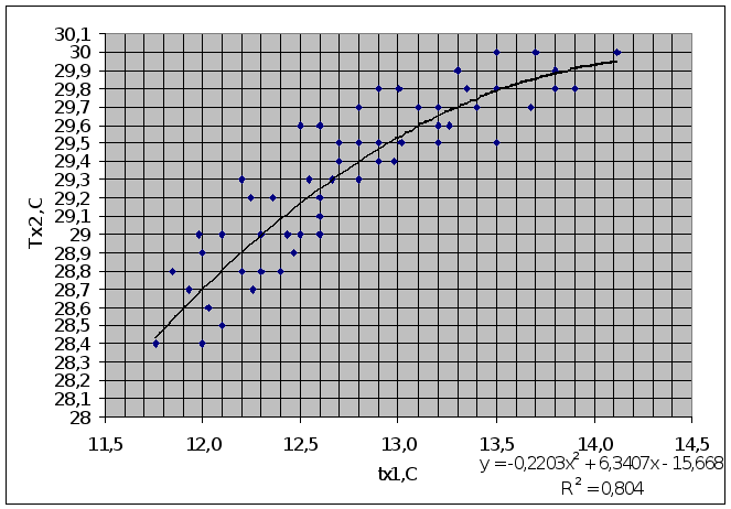 T(G) = 30,545 – 5,193·10-3·G Параболическая регрессия.