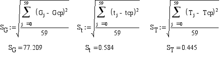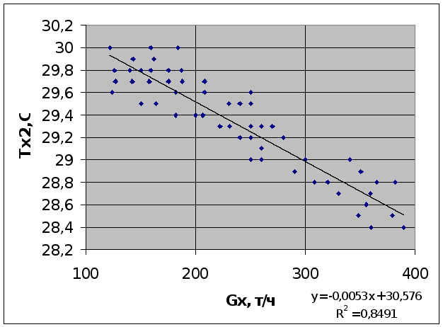 во-вторых, это наглядно показывает уравнение регрессии T(G) = 30,545 – 5,193·10-3·G (при изменении расхода G, температура Т практически не изменяется)