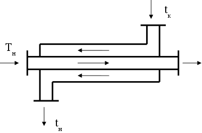 Тк Рис. 1. Схема движения жидкостей в теплообменнике типа «труба в трубе» при прямотоке (А) и противотоке (Б).