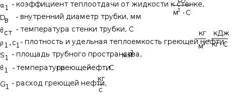 tx1 — входная температура холодной нефти, 0С; Gx. — расход холодной нефти, кг/с; Tx2 — выходная температура нагретой нефти, 0С ;Gг — расход горячей нефти, кг/с; tг1, tг2 — соответственно температура горячей нефти на входе и выходе, 0С.