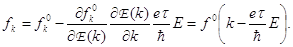 f0k = 1/{exp[(E k – z)/kT] + 1} (43) Здесь нужно проявить некоторую осторожность. Именно, как определить функцию f0k в случае, когда температура зависит от координат? Будем считать, что в каждой точке можно корректно определить локальную температуру T(r), и положим gk(r)=fk(r) – f0k{3T(r)}. (44) Если введение локальной температуры вызывает затруднения, можно потребовать, чтобы окончательное решение удовлетворяло какому-либо дополнительному условию, например ògk(r)dk = 0. (45)