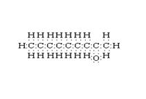Ýëåêòðîííàÿ ôîðìóëà: Âèä ñâÿçè:  ìîëåêóëå íîíèíà èìååòñÿ 24 d -ñâÿçè è 2 π- ñâÿçè. 2 d -ñâÿçè ðàñïîëàãàþòñÿ ïî îäíîé ëèíèè ïîä óãëîì 180° äðóã ê äðóãó. Äâå π –ñâÿçè îáðàçîâàíû p-ýëåêòðîíàìè ñîñåäíèõ àòîìîâ óãëåðîäà è ðàñïîëàãàþòñÿ âî âçàèìíî ïåðïåíäèêóëÿðíûõ ïëîñêîñòÿõ. Òðîéíàÿ ñâÿçü ÿâëÿåòñÿ ñî÷åòàíèåì d è 2õ π -ñâÿçåé. Îáðàçîâàíèå ñâÿçåé: Sp3-Ãèáðèäèçàöèÿ àòîìîâ óãëåðîäà, Äâå π –ñâÿçè îáðàçîâàíû p-ýëåêòðîíàìè ñîñåäíèõ àòîìîâ óãëåðîäà è ðàñïîëàãàþòñÿ âî âçàèìíî ïåðïåíäèêóëÿðíûõ ïëîñêîñòÿõ. Èçîìåðèÿ: 1) Èçîìåðèÿ óãëåðîäíîãî ñêåëåòà 2) Èçîìåðèÿ ïîëîæåíèÿ òðîéíîé ñâÿçè 3) Ìåæêëàññîâàÿ èçîìåðèÿ ñ àëêàäèåíàìè. à) CH3-CH2-CH2-CH2-CH2-CH-C≡CH │ CH3 3ìåòèëîêòèí-1 á) CH3-CH2-C≡C-CH2-CH2-CH2-CH2-CH3 íîíèí-3 â) CH3-CH2-CH2-CH2-ÑH2-CH=CH-CH=CH2 íîíàäèåí1,3 Íàõîæäåíèå â ïðèðîäå: Íåôòü. Ïîëó÷åíèå: 1.Äåãèäðîãàëîãåíèðîâàíèå.C5H11-CH2-CHBr2-C2H5+2KOH→C9H16+2KBr+2H2OC5H11-CHBr-CHBr-C2H5+2KOH→ C9H16+2KBr+2H2O2. Óäëèíåíèå öåïè.C5H11-CH3-C≡CNa+Br-CH3→ C9H16+NaBrÔèçè÷åñêèå ñâîéñòâà: Íîíèí (â íîðìàëüíûõ óñëîâèÿõ) –æèäêîñòü. Íîíèí ïëîõî ðàñòâîðèì â âîäå, ëó÷øå - â îðãàíè÷åñêèõ ðàñòâîðèòåëÿõ. Õèìè÷åñêèå ñâîéñòâà: 1. Ðåàêöèè ýëåêòðîôèëüíîãî ïðèñîåäèíåíèÿ ïðîòåêàþò ìåäëåííåå, ÷åì äëÿ íîíåíà. Ïðîäóêòû îïðåäåëÿþòñÿ ïðàâèëîì Ìàðêîâíèêîâà. à) Ãàëîãåíèðîâàíèå. Íîíèí îáåñöâå÷èâàåò áðîìíóþ âîäó: Br2 Br2 C7H15-C≡CH → C7H15-CBr=CHBr→ C7H15-CBr2-CHBr2 á) Ãèäðîãàëîãåíèðîâàíèå: HCl HCl C7H15-C≡CH → C7H15-CCl=CH2 → C7H15-CCl2-CH3 â) Ãèäðàòàöèÿ (ðåàêöèÿ Êó÷åðîâà) ïðîòåêàåò â äâå ñòàäèè. Íà ïåðâîé ñòàäèè îáðàçóåòñÿ íåóñòîé÷èâûé íåïðåäåëüíûé ñïèðò, êîòîðûé çàòåì èçîìåðèçóåòñÿ â êåòîí. Hg2+,H+ C7H15-C≡CH + Í2Î ―→ [C7H15-C(OH)=CH2] → C7H15-CÎ-CH3 2. Ðåàêöèè îêèñëåíèÿ è âîññòàíîâëåíèÿ. à) Îêèñëåíèå ïåðìàíãàíàòîì êàëèÿ ñ ðàñùåïëåíèåì òðîéíîé ñâÿçè è îáðàçîâàíèåì êàðáîíîâûõ êèñëîò: C7H15-C≡CH + 3[O] + H2O → C7H15-COOH + H-COOH á) Ãèäðèðîâàíèå ïðè íàãðåâàíèè ñ ìåòàëëè÷åñêèìè êàòàëèçàòîðàìè: Í2 Í2 C7H15-C≡CH → C7H15-CÍ=CH2 → C7H15-CÍ2-CH3 3. Êà÷åñòâåííûå ðåàêöèè íà òðîéíóþ ñâÿçü – îáåñöâå÷èâàíèå áðîìíîé âîäû è ðàñòâîðà ïåðìàíãàíàòà êàëèÿ. Ïðèìåíåíèå:  îðãàíè÷åñêîì ñèíòåçå. Ñïèðòû. Íîíèëîâûé ñïèðò. Íîíàíîë-1. Ìîëåêóëÿðíàÿ ôîðìóëà: C9H19OH Ñòðóêòóðíàÿ ôîðìóëà: CH3–CÍ2–ÑÍ2–ÑÍ2-ÑÍ2–ÑÍ2–ÑÍ2–ÑÍ2-ÑÍ2-OH