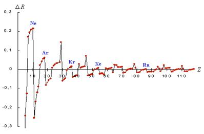 Рис. 2. График приращения значений R-функции систем электронных подоболочек атомов химических элементов