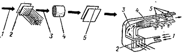 Восстановление водородом (б): 1- кварцевая ила металлическая труба, 2 - держатели или кольцевые нагреватели, 3 - лодочка или емкость для образца, 4 - образцы, 5 - рычаг управления движением образцов. Перечень хороших качеств металлического тантала (твердость, ковкость на холоду, пластичность, устойчивость к химическим воздействиям) следует дополнить особым свойством.. В отличие от других металлов тантал совершенно не раздражает соприкасающуюся с ним живую ткань. Тонкие пластиной и проволока из тантала — ценнейший материал костной и пластической хирургии. Танталовые заплаты на черепе, скрепление костей и даже сшивание нервов стали возможны благодаря такому удивительному свойству этого металла. IV.2. Химические свойства тантала Различие свойств тантала в виде кусков и порошкообразного так велико, что кажется, будто это два разных металла. Порошок при нагревании довольно энергично взаимодействует с кислородом (280°С): 4Та+5О2 = 2Та2О5, с галогенами (250 — 300°С): 2Ta + 5Cl2 = 2TaCl5, с серой Ta + 2S = TaS2 и даже с азотом (при накаливании до 600о С в токе азота): 2Ta +N2 = 2TaN Металлический тантал же устойчив в подавляющем большинстве агрессивных сред. На него не действуют никакие кислоты и даже «царская водка». Исключение составляет лишь плавиковая кислота H2F2, но это из-за присутствия в ней иона фтора. Очень слабо действуют на него даже расплавы щелочей. Секрет устойчивости металлического тантала состоит в том, что на его поверхности всегда имеется тонкая, но прочнейшая пленка оксида Ta2O5. Если вещество или соединение может вступать во взаимодействие с этой пленкой или проникать сквозь нее, то оно будет разрушать металл, а если нет, то тантал будет сохранять свою «неприступность». К реагентам, обладающим разрушительной способностью, относятся: ионы фтора, оксид серы (VI) да еще расплавы щелочей. Эта же пленка препятствует протеканию электрического тока от металла в раствор при электролизе (когда танталовый электрод служит анодом). Поэтому тантал используется в электронной технике для изготовления выпрямителей тока. В отсутствие кислорода и азота тантал устойчив ко многим жидким металлам. Обескислороженный металлический натрий не действует на него даже при 1200°С, магний и сплавы — уран-магний и плутоний-магний — при 1150°С. Это позволяет использовать тантал для изготовления некоторых деталей ядерных реакторов. Тантал способен поглощать довольно значительные количества (до 1%) водорода, кислорода и азота. Происходит процесс, который называется абсорбцией, — явление поглощения какого-либо вещества всем объемом поглотителя без образования прочных соединений. Подобный процесс обратим. Поглощенный водород при нагревании металла в вакууме при 600°С весь выделяется. Металл, которому водород придал хрупкость, восстанавливает свои прежние механические качества. Свойством тантала растворять газы пользуются, когда вводят его в качестве добавки в сталь. При. повышенной температуре происходит образование соединений. При 500°С могут существовать гидриды Та2Н или ТаН в зависимости от содержания водорода в металле. Выше 600 — 700°С при взаимодействии с кислородом возникает оксид Та2О5, примерно при такой же температуре идет реакция с азотом — появляется нитрид тантала TaN. Углерод при высокой температуре (1200—1400°С) соединяется с танталом, давая ТаС — тугоплавкий и твердый карб