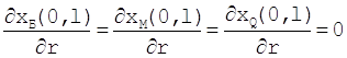 xБ = СБ/Со, хМ = CМ/Co, хQ = CQ/Со Граничные условия: