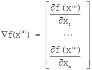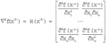 0 < r £ R, 0 < l £ L Кинетические константы: A1 = 2,6127 с—1, А2 = 0,2079 с—1, A3 = 0,3189 с—1, Е1 = 11503,5 кал/моль, Е2 = 24913,7 кал/моль, E3 = 19744.1 кал/моль, (5.10) B1 = 5,1413 м3/(моль*с), B2 = 4,6351 м3/(моль*с), В3 = 0.8173 m3/(моль*с), F1 = 0,0056 м3/(моль*c), F2 = 0,0219 м3/(моль*c), F3 = 0,0121 м3/(моль*c), D1 = 0,1328 м3/(моль*с), D2 = 0,1085 м3/(моль*с), D3 = 0,0678 м3/(моль*с) 5.1.6 Описание метода оптимизации.Методом оптимизации был выбран метод Ньютона. Метод Ньютона является одним из самых эффективных методов второго порядка /10/. Идея метода в следующем – в окрестности имеющегося приближения хn исходная задача заменяется некоторой вспомогательной линейной задачей. Последняя задача выбирается так, чтобы погрешность замены имела более высоки порядок малости чем первый в окрестности имеющегося приближения. За следующее приближение принимают решение этой же вспомогательной задачи. Метод Ньютона записывается в виде: