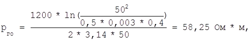В данном случае для II климатической зоны и горизонтального электрода длиной 50 м коэффициент Ψ=3. ρрасч = 400*3 = 1200 Ом*м Определение сопротивления группового контура: