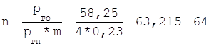 где n - число полос (неизвестно); m - коэффициент использования параллельно уложенных горизонтальных полос (определяется из справочной лиитературы). Стоит отметить, что значение ρгп не должно превышать значение 4 Ом. Определяем ориентировочно количество полос по формуле: n≈ρго/ρгп=58.25/4 =14.56 ≈15 (6.4) Для горизонтального электрода длинной 50м при расстоянии между полосами в 2.5м, коэффициент использования полос равен 0.23. Уточняем количество полос, необходимых для безопасного заземляющего контура: