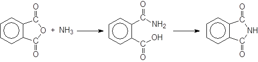 Однако при использовании аммиака и первичных аминов получаются также и имиды, в которых с атомом азота свяэаны две ацильные группы. Это происходит особенно легко в случае циклических ангидридов, из которых образуются циклические имиды: