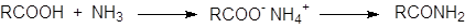 При обработке карбоновых кислот аммиаком или аминами получаются соли. Соли, полученные из аммиака, а также первичных и вторичных аминов в результате пиролиза дают амиды, но этот метод менее удобен, чем реакции аминов с ангидридами, ацилгалогенидами и сложными эфирами, и редко используется в препаративных целях. Хотя и взаимодействие кислот с аминами не приводит непосредственно к амидам, можно добиться чтобы эта реакция шла с хорошим выходом при комнатной или немного повышенной температуре.