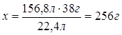 масса 156,8 л газа 256 г.