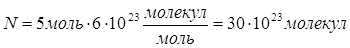 5 моль азота содержится 30∙1023 молекул азота и 60∙1023