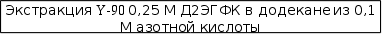 Радионуклиды и реагентыИспользовались 0,5 М раствор азотной кислоты, 0,1 М и 6,0 М растворы соляной кислоты. Они были приготовлены из комерческих химически чистых (chemical grade) реактивов и дважды дионизированной воды. Раствор 90Sr без носителя был поставлен В/О “Изотоп”. Раствор 90Sr был предварительно очищен экстракцией Д2ЭГФК : он был пропущен через колонку с тефлоном с нанесенной Д2ЭГФК или центрифужный экстрактор после первого контакта с Д2ЭГФК, как будет описано ниже. Растворы 85Sr и 88Y, поставленные В/О “Изотоп” были использованы для более точного определения коэффициентов распределения иттрия и стронция в системах HNO3 - Д2ЭГФК и Д2ЭГФК – HCl, а также для определения коэффициента очистки 90Y от 90Sr. -7- Выделение и очистка 90Y Таблица 3. Распределение 90Y (88Y) в опытах на центрифужном экстракторе.
