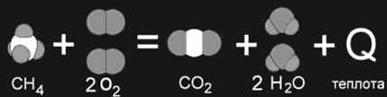 Рис. 1а,б. Изображение химических реакций при помощи моделей молекул: а) экзотермическая реакция, б) эндотермическая реакция. Модели наглядно показывают, как при неизменном числе атомов между ними разрушаются старые и возникают новые химические связи. Таким образом, любая химическая реакция сопровождается выделением или поглощением энергии. Чаще всего энергия выделяется или поглощается в виде теплоты (реже - в виде световой или механической энергии). Эту теплоту можно измерить. Результат измерения выражают в килоджоулях (кДж) для одного моля реагента или (реже) для моля продукта реакции. Такая величина называется тепловым эффектом реакции.