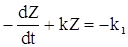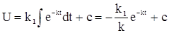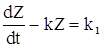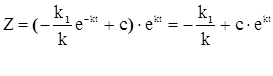 Уравнение (3.11) - это уравнение Бернулли , поэтому сделаем следующую замену Z = U×V , где U и V неизвестные пока функции n , тогда Z1 = U1 V + U V1 . Уравнение (3.11) , после замены переменных , принимает вид U1 V + UV1 - k UV = k1 преобразуем , получим U1 V + U(V1 - k V) = k1 (3.12) Решим уравнение (3.12) V1 - k V = 0 ® dV/dt = k V сделаем разделение переменных dV/V =k dt ® ln V = k t результат V = ekt (3.13) Отсюда мы можем уравнение (3.12) переписать в виде : U1 ekt = k1 - это то же самое , что dU/dt = k1e-kt , dU = k1e -kt dt выразим отсюда U , получим