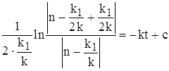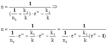 Начальное условие n0=1/(c-k1/k) , из этого условия мы можем определить константу с следующим образом