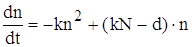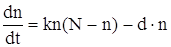 Здесь , конечно , рассмотрен придельный случай сохранения полного количества органического вещества A + n = N = const , N - способность среды обитания поддерживать популяцию. Тогда с учетом A = N - n получится следующее уравнение эволюции популяции одного вида (логистическое уравнение Ферхюльста ) :