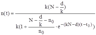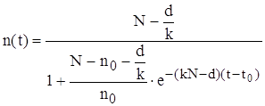Итак , получено аналитическое решение логистического уравнения - это решение указывает на то , что рост популяции останавливается на некотором конечном стационарном уровне: