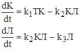 Здесь буквы К, Л, Т - означают соответственно количество кроликов , лисиц , травы ; коэффициенты k1, k2, k3 - обозначают соответственно скорость рождения кроликов , скорость поедания кроликов лисицами и скорость гибели лисиц. В программе понадобится уточнить значение отношений (примерно равное 1), постоянное количество травы (так же принимаемое обычно равным 1), начальные значения популяции кроликов и лисиц (обычно 0,4), продолжительность цикла (типичное значение 700) и шаг по оси времени (обычно равный 1). Программа популяции - это график. Он показывает поведение популяций при различных степенях плодовитости , а так же различных способностях избегать истребление. Совершенно ясно , что в действительности происходят периодические колебания численности популяции кроликов и лисиц , причем за нарастании численности кроликов следует нарастание численности лисиц , которые сменяются уменьшением численности кроликов , сопровождающимся столь же резким снижением численности лисиц , затем повышенным подъемом численности кроликов и так далее, то есть видно , что система самоорганизуется. Программа прилагается.