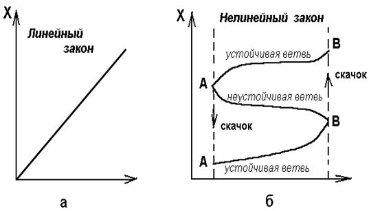 где k - некоторый параметр , l - внешние управляющие ограничения . Тогда стационарное состояние определяется из следующего алгебраического уравнения l - kX = 0 (2.11) откуда Xs = l / k (2.12) В стационарном состоянии , таким образом , значении характеристики , например , концентрации , линейно изменяется в зависимости от значений управляющего ограничения l , и имеется для каждого l единственное состояние Хs . Совершенно однозначно можно предсказать стационарное значение Х при любом l ,если иметь хотя бы два экспериментальных значения Х (l ) .Управляющий параметр может , в частности , соответствовать степени удаленности системы от равновесия . Поведение в этом случае системы очень похожи на равновесии даже при наличии сильно неравновесных ограничений .
