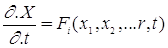 где первый член дает вклад химических реакций в изменении концентрации Хi и обычно имеет простой полиноминальный вид , а второй член означает диффузию вдоль оси r. По истине поразительно , как много разнообразных явлений описывает реакционно-диффузное уравнение (2.4 ) , по этому интересно рассмотреть ² основное решение ² , которое бы соответствовала термодинамической ветви . Другие решения можно было бы получать при последовательных не устойчивостях , возникающих по мере удаления от состояния равновесия . Неустойчивости такого типа удобно изучать методами теории бифуркации [ Николис и Пригожин , 1977] . В принципе , бифуркация есть нечто иное , как возникновение при некотором критическом значении параметра нового решения уравнений . Предположим , что мы имеем химическую реакцию , соответствующую кинетическому уравнению [ Маклейн и Уолис , 1974] . d X ¾ = a X (X-R) (2.5) d t Ясно что при R < 0 существует только одно решение , независящее от времени , X = 0 . В точке R = 0 происходит бифуркация , и появляется новое решение X = R .