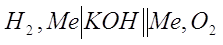 Н2О Анод Катод (2) 2Н2 + 4ОН- à4Н2О+4е О2 + 2Н2О + 4е à4ОН- (3) Суммарная реакция 2Н2 + О2 à 2Н2О + Nэлектр (4) Рисунок 1. Принцип действия топливного элемента. Как и гальванический элемент, ТЭ состоит из анода и катода. К аноду подается топливо (восстановитель) в данном случае водород, к катоду – окислитель, обычно чистый кислород или кислород воздуха. Между электродами находится электролит, в качестве которого для рассматриваемого водородно-кислородного элемента используется раствор щелочи. Схема водородно-кислородного ТЭ может быть записана в виде