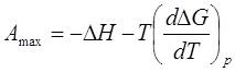 где DН – энтальпия реакции, DS – энтропия реакции, Т – температура, а значение максимальной полезной работы реакции при замене в выражении для G энтропии S уравнением