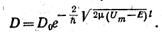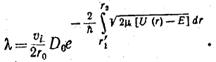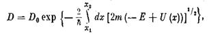 интегрирование проводится по классически недоступной области, х1,2 - точки поворота, определяемые из условия U(х1,2) = Е. В точках поворота в пределе классической механики импульс частицы обращается в нуль. Коэффициент. Do требует для своего определения точного решения квантово-механической. задачи. При выполнении условия квазиклассичности