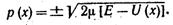 Знаки ± следует выбрать в зависимости от направления движения частицы. Если энергия частицы Е больше «высоты» барьера Um, то частица беспрепятственно пройдет барьер слева направо, если начальный импульс р>0, или в противоположном направлении, если начальный импульс р < 0. Допустим, что частица движется слева, имея полную энергию Е, меньшую U т. Тогда в некоторой точке xt потенциальная энергия U (х1)=Е, p(x1)=0, частица остановится. Вся ее энергия обратится в потенциальную, и движение начнется в обратном порядке: х1 есть точка поворота. Поэтому при E<.Um частица, движущаяся слева, не пройдет через область максимума потенциала (х = х0) и не проникнет во вторую область х > х0 Подобным же образом, если частица движется справа налево, имея Е < Um , то она не проникнет в область за второй точкой поворота х2,