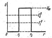 Рис 4.2 Потенциальный барьер, ограничивающий замкнутую область (r < r1) и имеющий простую прямоугольную форму. Такой подход к решению мы рассмотрим подробнее. Он удобен тем, что допускает разделе r и t в уравнении (4.2) Положим сразу