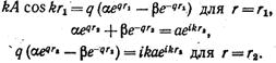 Кроме того, условие излучения дает b = 0 (только уходящие волны). Краевые условия на границах r = r 1 и r = r 2, как мы установили в § 1, сводятся к равенству функций и их первых производных