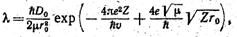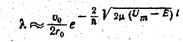 Для вычисления константы распада λ мы можем применить квантовую теорию просачивания частиц через потенциальные барьеры, изложенную в предшествующем параграфе. Согласно этой теории α - частицу внутри ядра следует рассматривать как находящуюся в «квазистационарном» состоянии. Обозначая скорость частицы в этом состоянии через υi,-, радиус барьера через r0 и его коэффициент прозрачности через D, мы получим