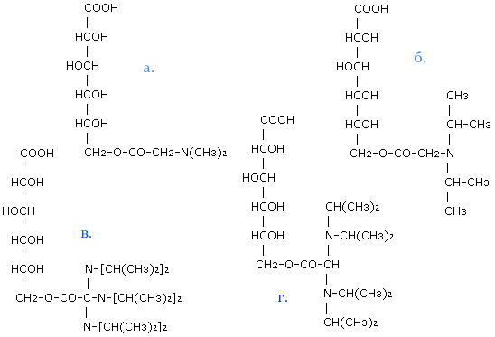 Пространственное строение молекулы витамина В15 изображено на рис. 9 (Приведено строение пангамата кальция, соли, применяющейся в терапевтических целях) Аналогами витамина В15 можно считать ряд соединений, представленных на рис. 10, так как во всех этих соединениях метильная группа лабильна, что и обуславливает биохимические свойства витамина В15. Механизм действия Потребность в витамине В15 (по Кребсу, данные от 1951 г.) составляет менее двух мг. в сутки. Однако принадлежность пангамовой кислоты к витаминам не доказана, в частности не существует достоверных сведений об авитаминозах или гипервитаминозах, связанных с этим соединением. Предпринимались попытки определить токсичность пангамовой кислоты в связи с ее широким применением в терапии. Выяснилось, что токсическая доза для витамина В15 приблизительно в 100000 раз превышает терапевтическую, т. е. вещество, фактически, безвредно. Если кобаламиновые ферменты являлись в реакциях трансметилирования переносчиками метильной группы, то пангамовая кислота, судя по всему, выступает в этих реакциях в качестве донора одноуглеродного рацикала. Лишь немногие вещества способны передавать СН3-группу другим молекулам. Среди них метионин, холин, бетаин и некоторые незаменимые аминокислоты. В целом кажущаяся универсальность биологического действия витамина В15 (см. раздел «Клиника») обусловлена метилирующей способностью пангамовой кислоты и ее активностью в окислительных процессах. К Рисунок 10. Гомологи пангамовой кислоты. а) Глюконодиметиламиноацетат б) Глюконодиизопропиламиноацетат в) D-глюконотри-(N-диизопропиламино)-ацетат г) Глюконо-бис- (диизопропиламино)-ацетат ак и витамин В12, пангамовая кислота принимает участие в реакциях синтеза метионина, холина, креатина, адреналина, стеринов и стероидных гормонов. П Б Способность пангамовой кислоты заменять в реакциях трансметилирования такой классический донор метильной группы, как метионин, вызывает у исследователей большой интерес. Предположительно