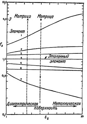 Фиг.12. Зависимость коэффициентов jА относительной чувствительности к разным элементам от типа поверхности образца[1]. При определении величины eS, следует отдавать предпочтение тем способам, которые основаны исключительно на информации, содержащейся в спектрах вторичных ионов или отношениях величин пиков этих ионов в спектре для неизвестного образца, т.е. информации типа отношений интенсивностей ионов М2+/М+, МО+/М+, МN+/М+ (иди любых других), зависящих от eS, но не зависящих от концентрации элементов. Кроме того, величину eS, можно рассчитать исходя из отношений ионных сигналов и концентраций двух или более компонентов, для которых jА/jА’ зависит от матрицы. Подобный метод пригоден при обнаружении следов элементов в хорошо известной матрице. И наконец, можно просто выбрать величину eS руководствуясь исключительно аналитическим опытом и интуицией. Такой способ не так уж плох, как могло бы показаться. По крайней мере исключаются грубые ошибки (фиг. 12). Единственный набор коэффициентов чувствительности позволяет определять концентрации с ошибкой не более чем в 2 раза для большинства элементов в ряде весьма различающихся матриц. Любая модель, которая вводит в коэффициенты относительной чувствительности поправку на влияние матрицы, может лишь улучшить результаты. Привлекательные стороны описанного выше подхода таковы: простая модель, которую можно использовать в любом приборе независимо от каких- либо теоретических или физических констант и которая основывается исключительно на эталонах и измерениях в данном приборе. Выше основной упор мы делали на анализ объемного состава твердых тел, а не тонких поверхностных слоев. Поскольку объемный состав твердых мишеней можно задать достаточно точно, они и служат эталонами для проверки количественных моделей. Для поверхностных пленок толщиной менее 50 А эталоны либо вообще невозможно, либо очень трудно изготовить. Следовательно, количественные данные для внешних 50 А можно получить лишь так же, как и в случае объемного образца, когда нет эталона. Глубинные профили концентрации элементов