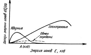 Фиг.2. Зависимость энергетических потерь иона от энергии [2].