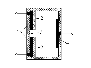 Рис. 2 проводимости меди. Если же на электроды 1 подать напряжение, положительное относительно электрода 4, то осажденная в зазоре медь растворяется и ячейка возвращается в прежнее состояние, характеризуемое высоким сопротивлением между электродами 1. Таким образом, ячейка имеет два устойчивых состояния, позволяющих записывать информацию в двоичном коде. С помощью несложной схемы коммутации на трехпозиционном переключателе можно осуществить три вида операций - записи, воспроизведения и стирания. Литература Б. С. Гершунский. Основы электроники и микроэлектроники. Киев, ВШ, 1989г. |